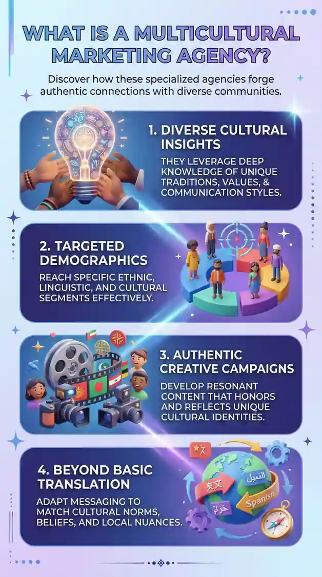 A multicultural marketing agency is a marketing agency whose team is built from the communities it serves — not one that researches those communities from the outside.